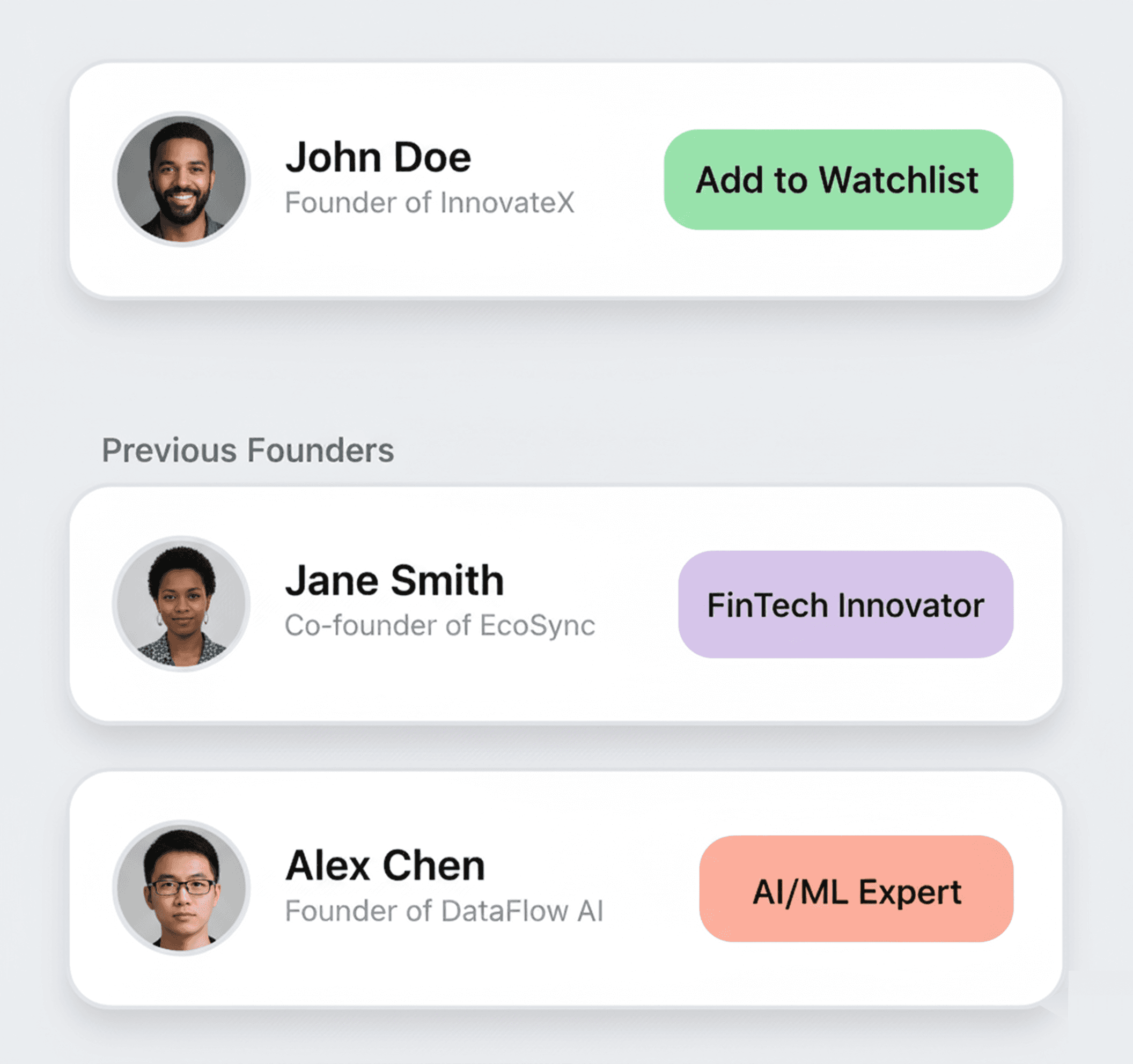 Siieve automatically researches and gathers information on founders' backgrounds, market data, and competitive landscape. Get instant, unbiased analysis with key metrics verified that matter to you.